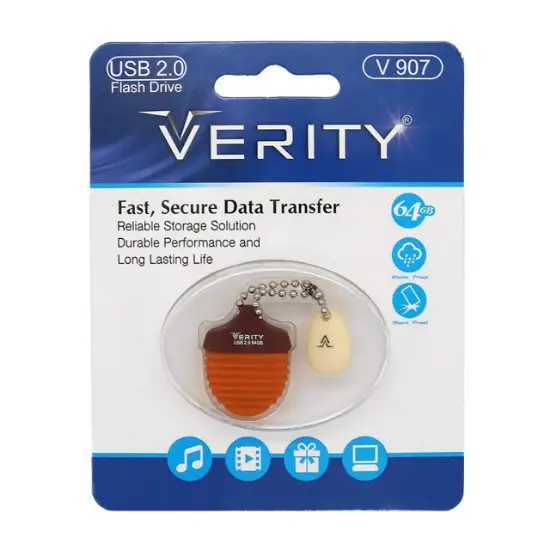 فلش مموری 32 گیگ وریتی مدل V907 یک فلش فانتزی پاک کنی است که به دلیل اندازه کوچک (حدود 5 سانتی متر) به راحتی قابل حمل است. این فلش دیسک دارای روکش پلاستیکی نرم و انعطافپذیری بوده و در برابر آب و ضربه مقاوم است.